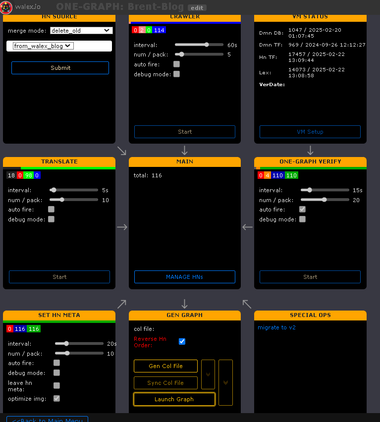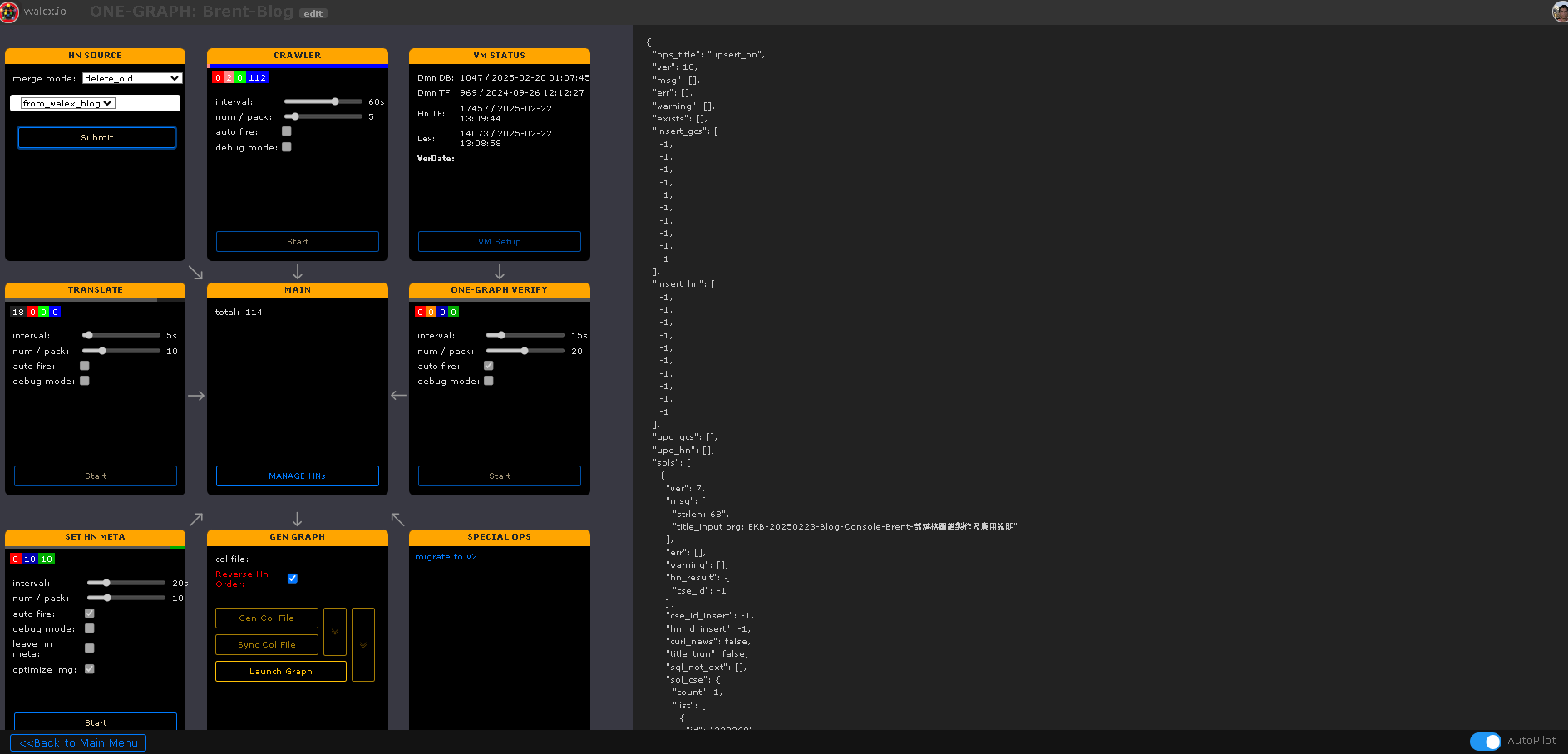 出現9分割的畫面之後,選擇 左上角視窗-點選from Walex blog ,設定右下角- Auto Pilot為 ON, 執行Sumit ,接著自動執行(時間10~200分鐘不等), 跑完成式之後,按中排下方的Launch Graph就完成圖譜了
