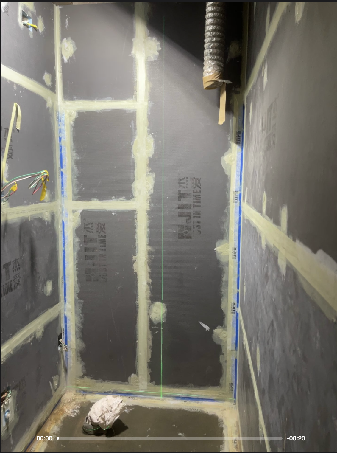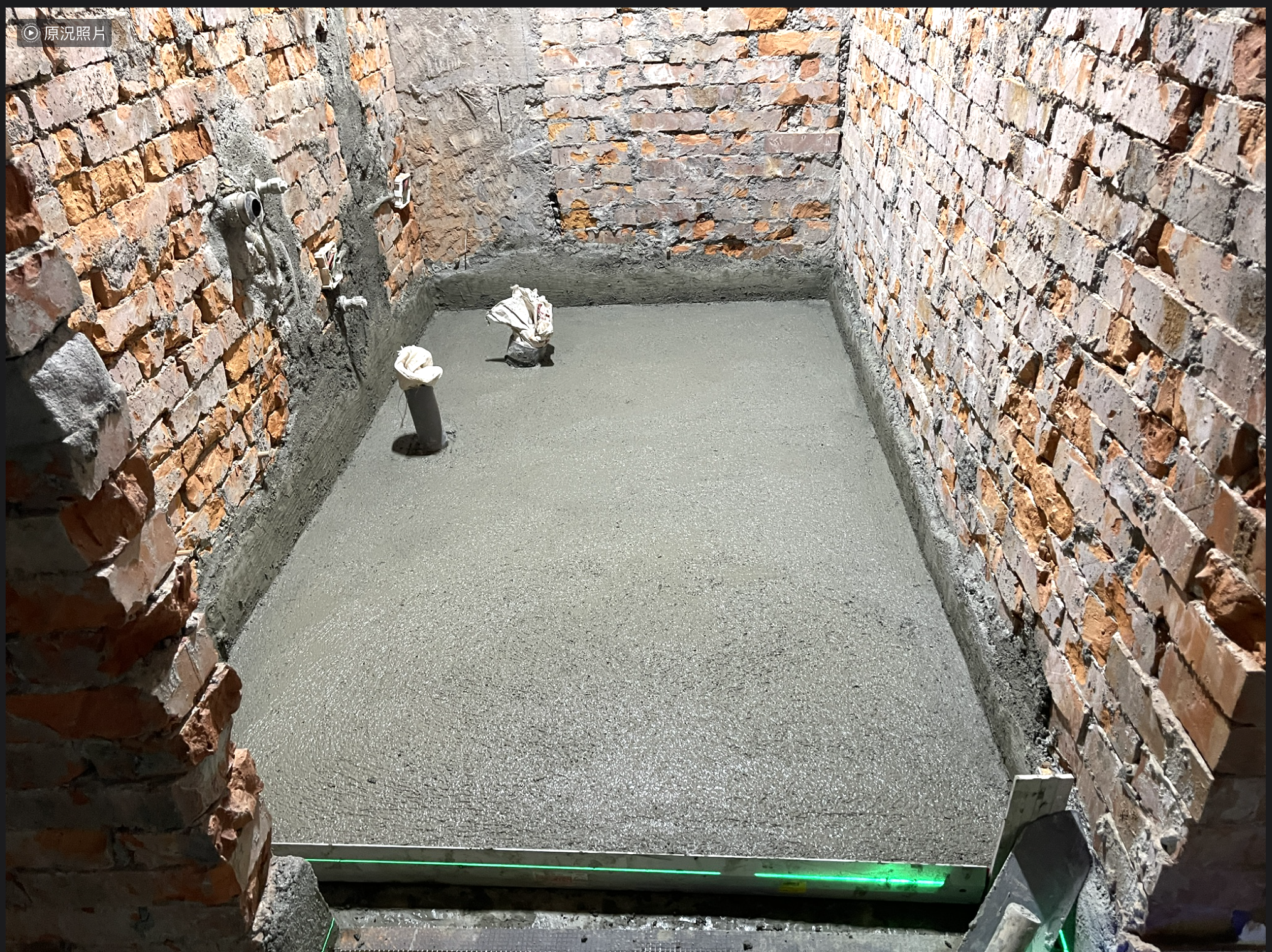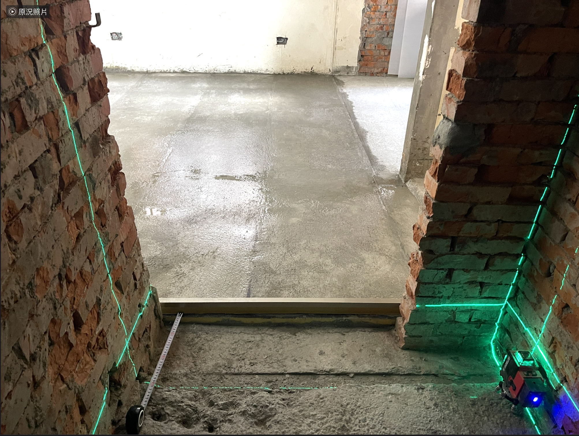放樣,進行規方,並確認牆面最凸處,並將明顯差異很大的部分填補厚度
