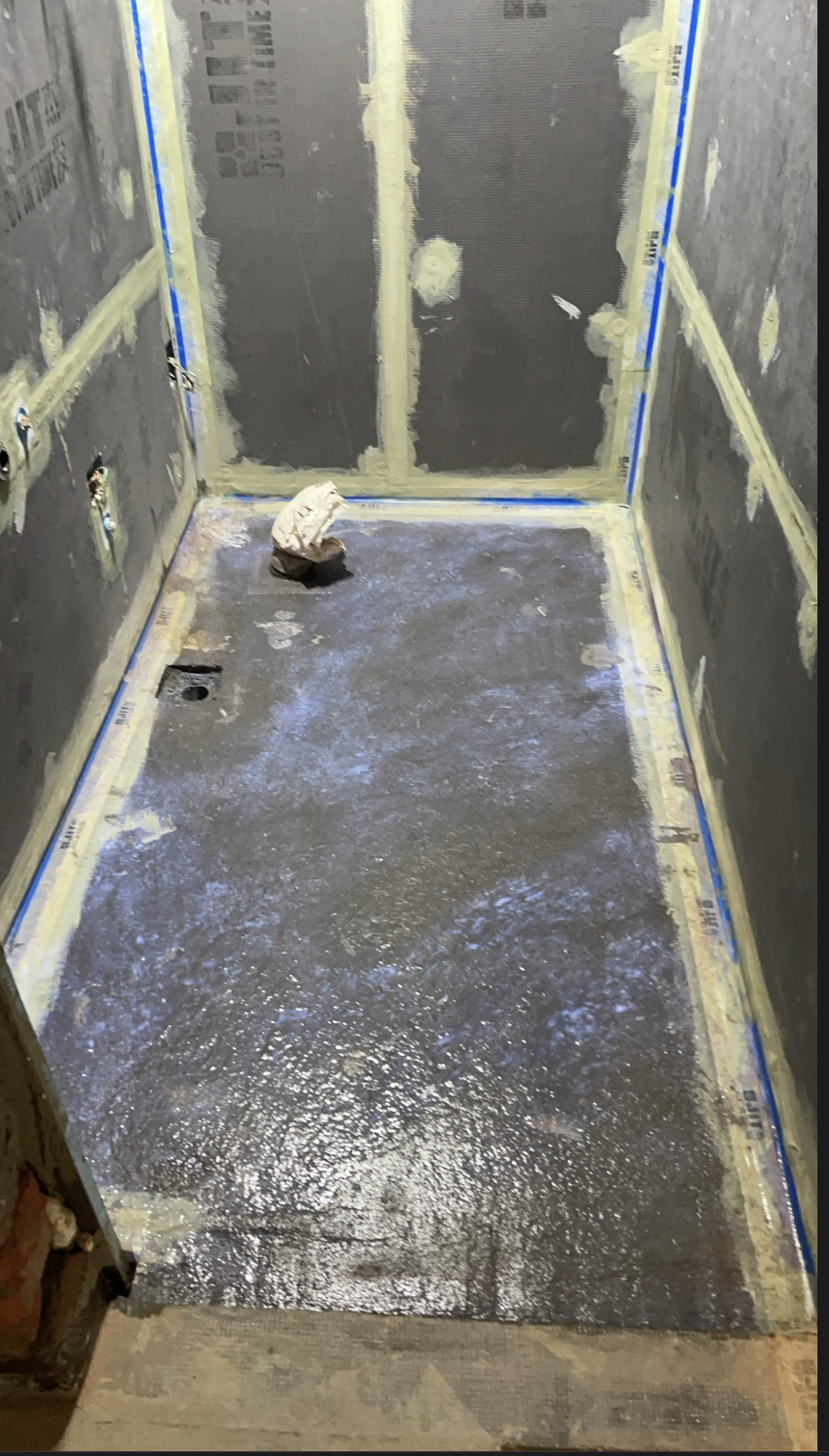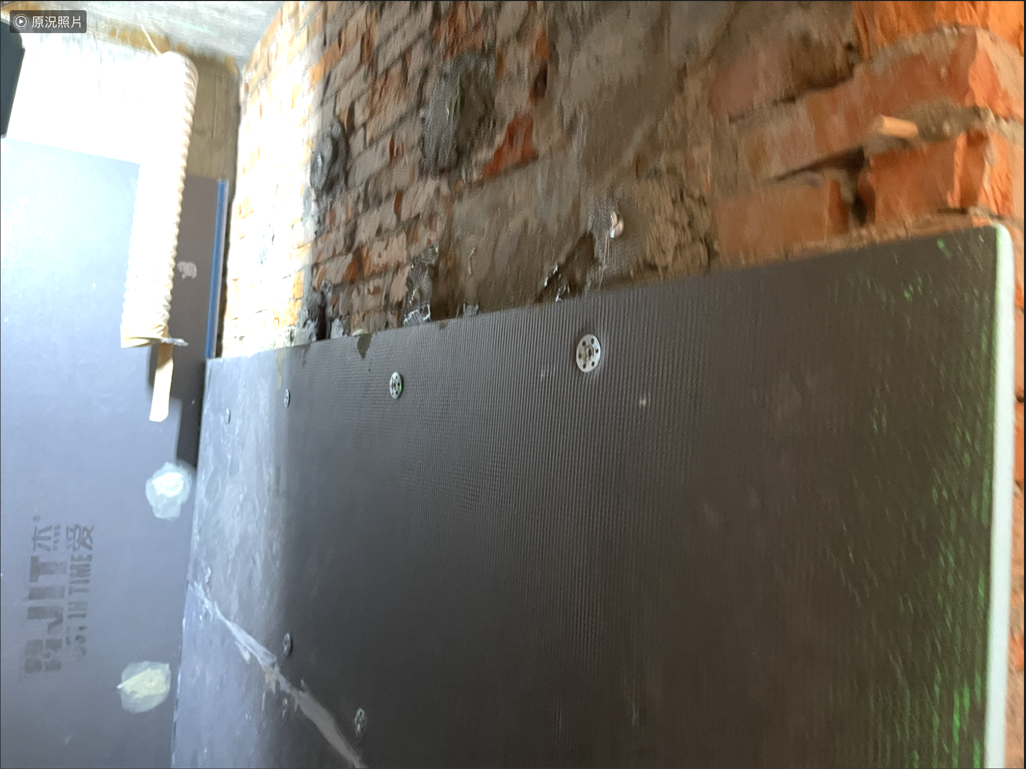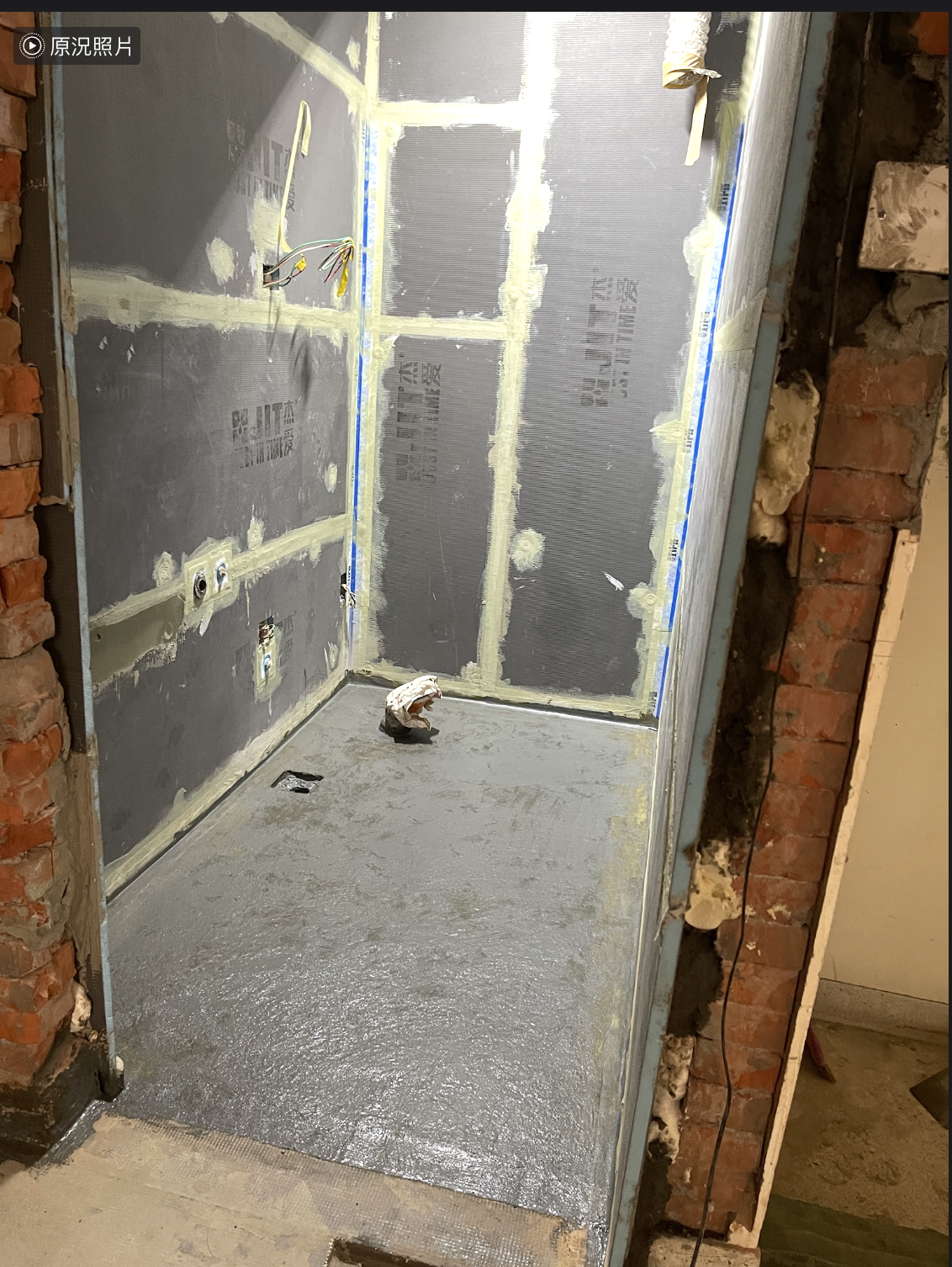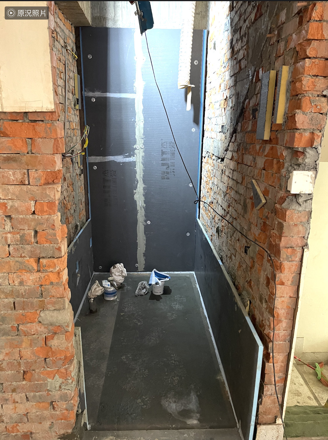 將墊底將牆面落差過大的部分進行修正後,直接上防水背襯板(臺灣稱“防水隔板”)