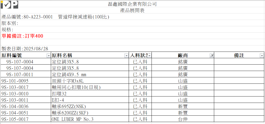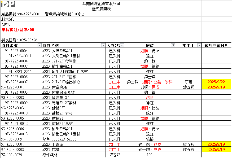 DWM-IDP-2025 A223 管道焊接減速箱(100比) 進料概況-Judy