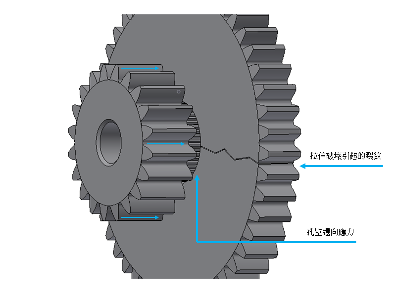 壓配合中最極端的失效模式是孔部件上的環向應力超過材料的極限抗拉強度,進而發生斷裂。
