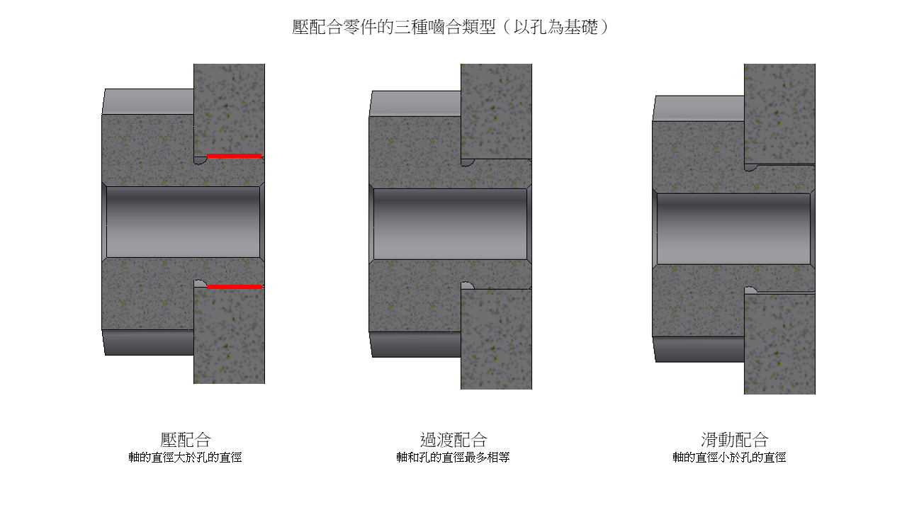壓配合依賴於軸(公零件)和孔(母零件)之間的受控過盈配合。軸比孔略大,因此需要施加力才能組裝。壓配合組件依賴零件在推入時輕微的形狀變化。這種細微的變化形成了強大的抓握力,確保組件牢固。