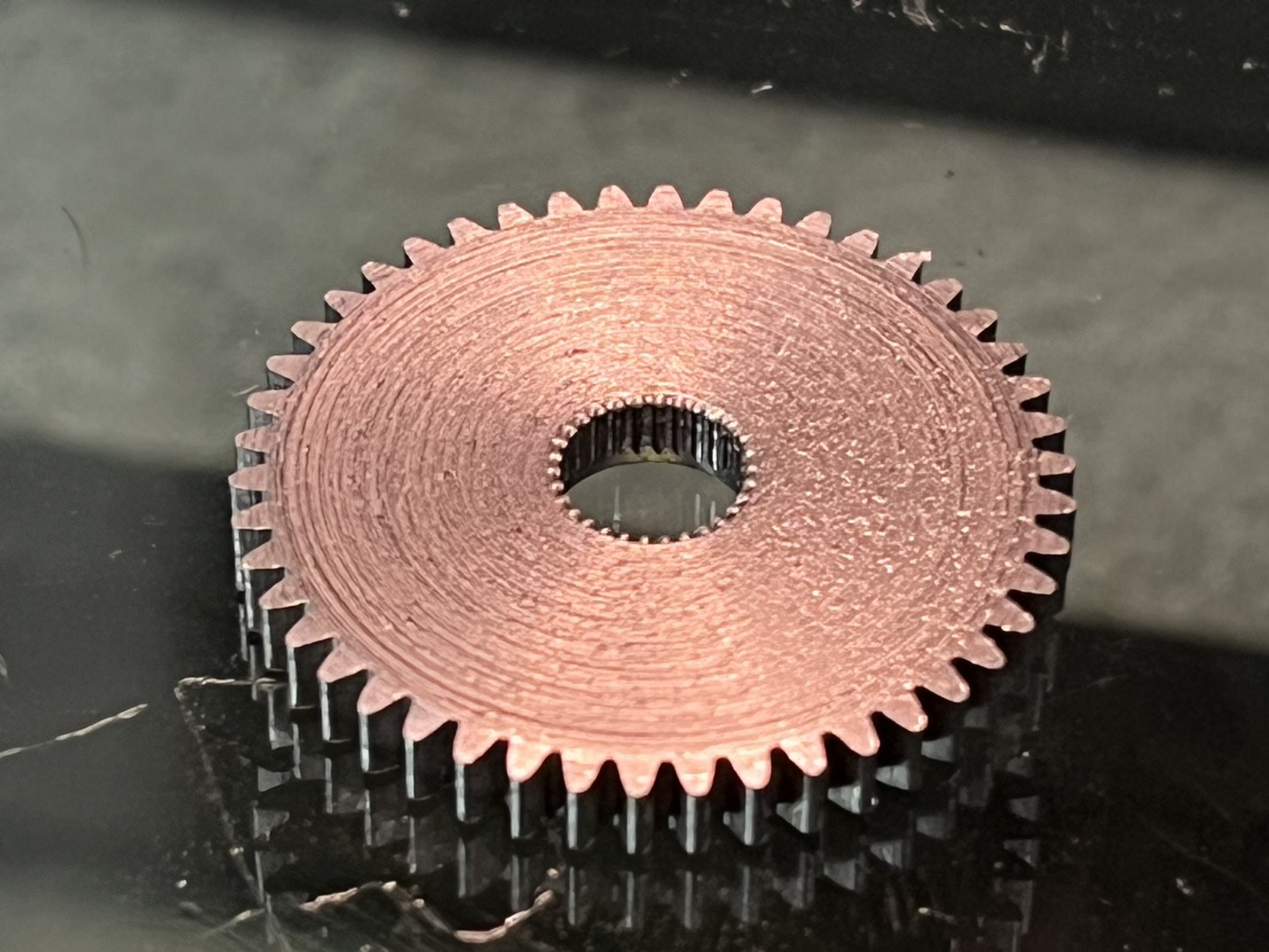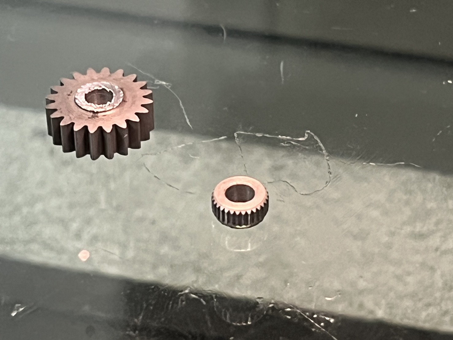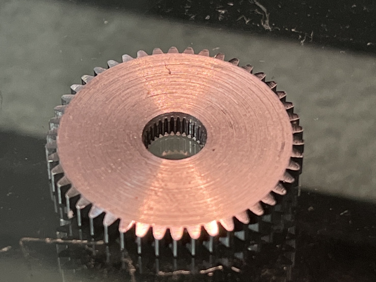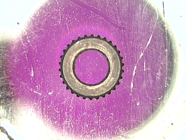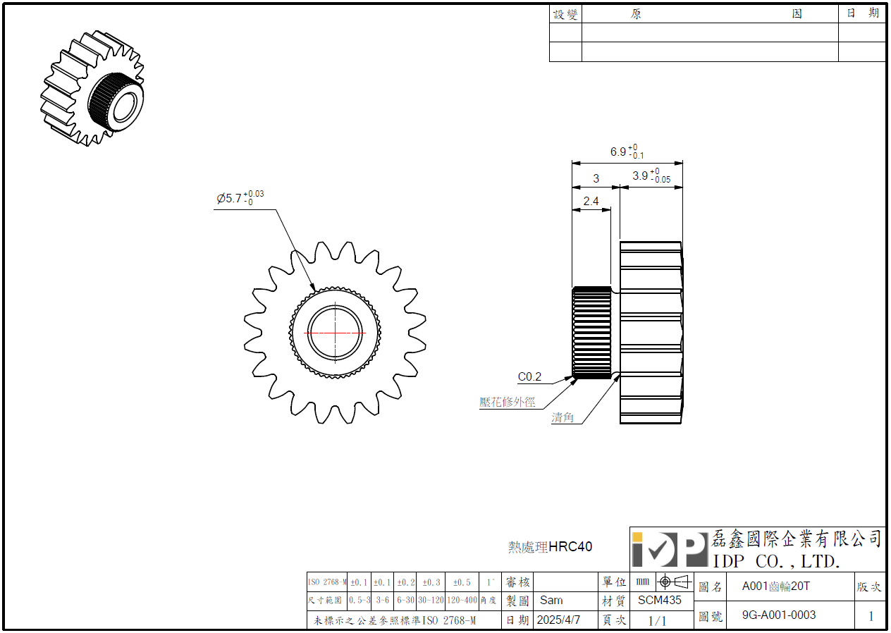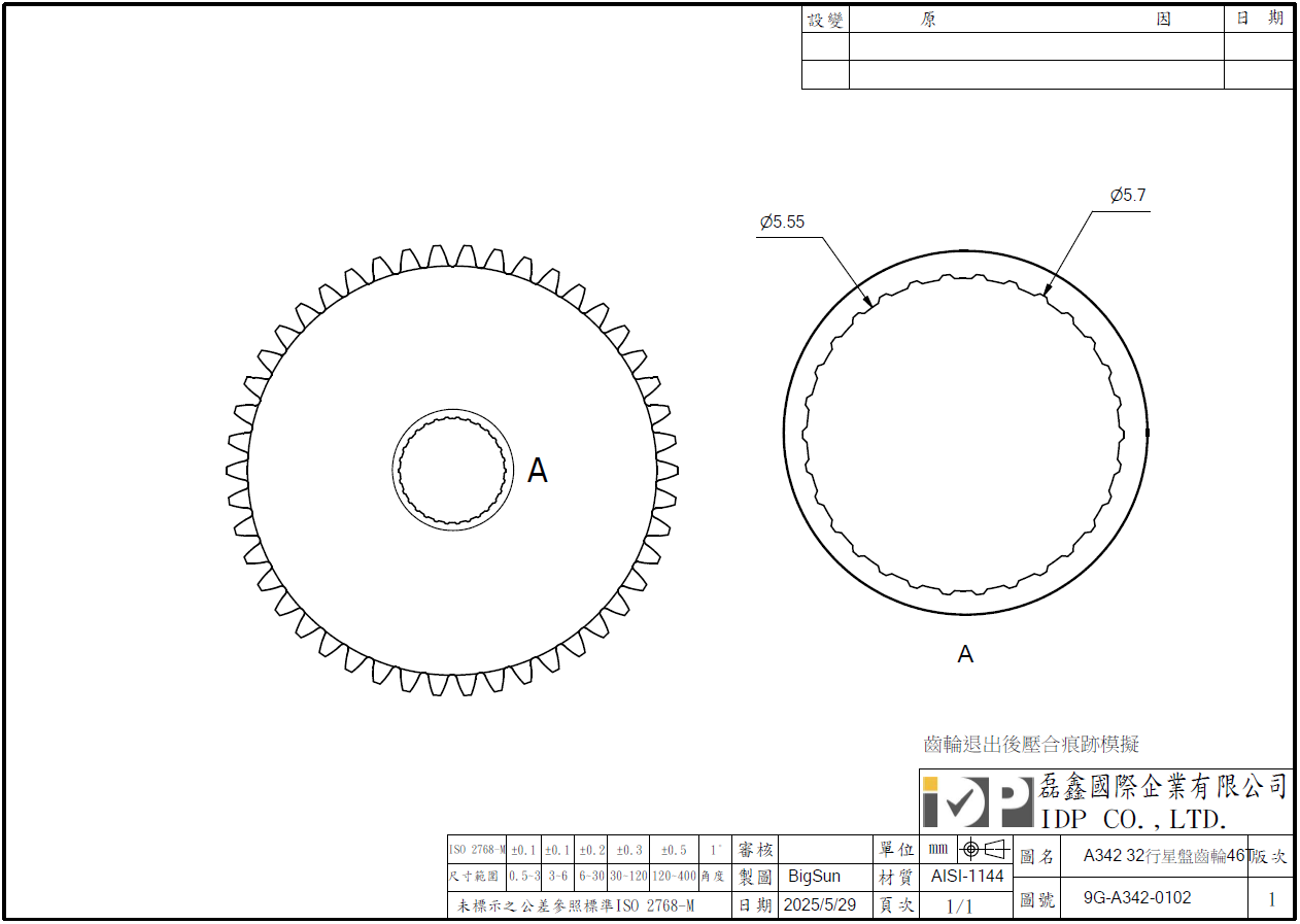 因A001齒輪20T壓花有倒角,壓花痕跡沒貫穿會有餘料,所以投影壓花痕跡不清楚