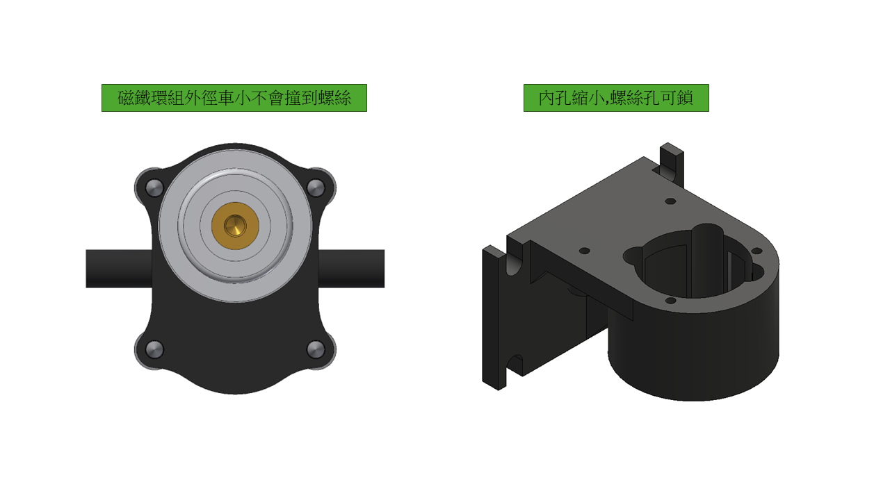 3.底座銑掉興業磁鐵環的外徑會也把鎖馬達的孔銑掉,造成無法鎖馬達