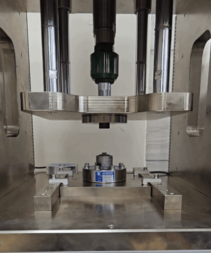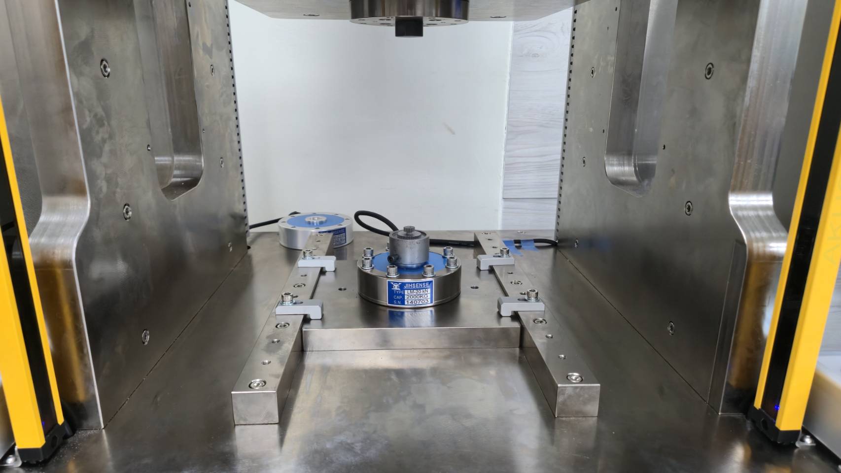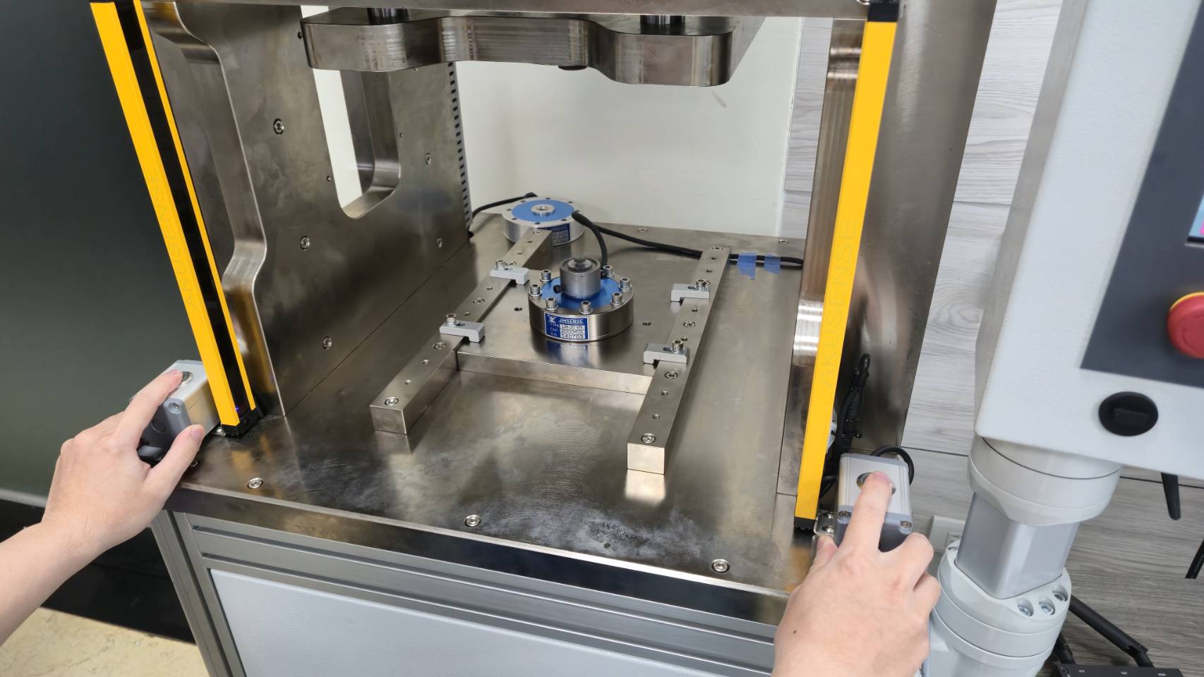 STEP14.在治具上放入加工件⬇                                STEP15.雙手同時按下啟動鍵 啟動程式