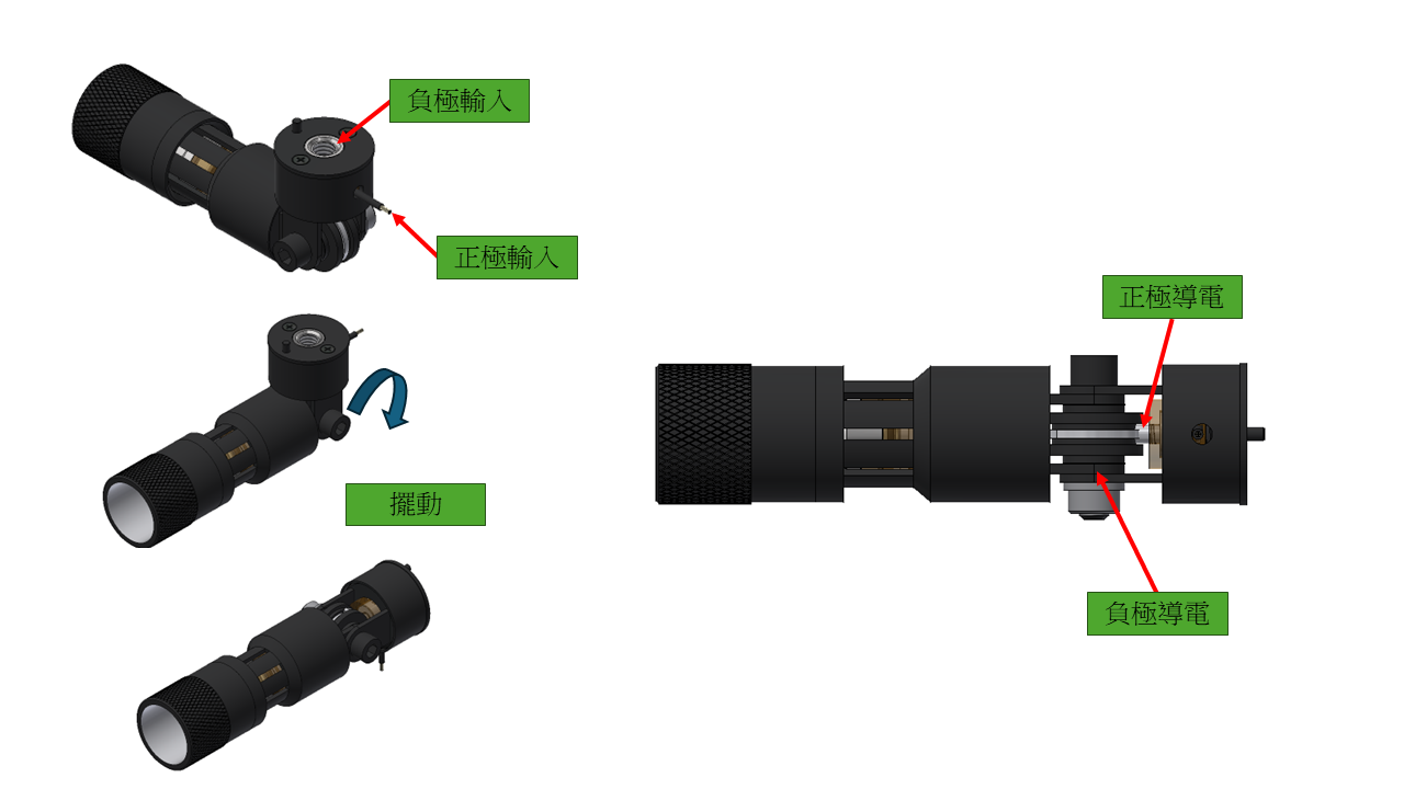 內是正極,外是負極,壽命測試擺動接觸點磨損,電錶量測有無導通
