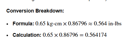 0.65kg-cm 約0.564in-lbs
