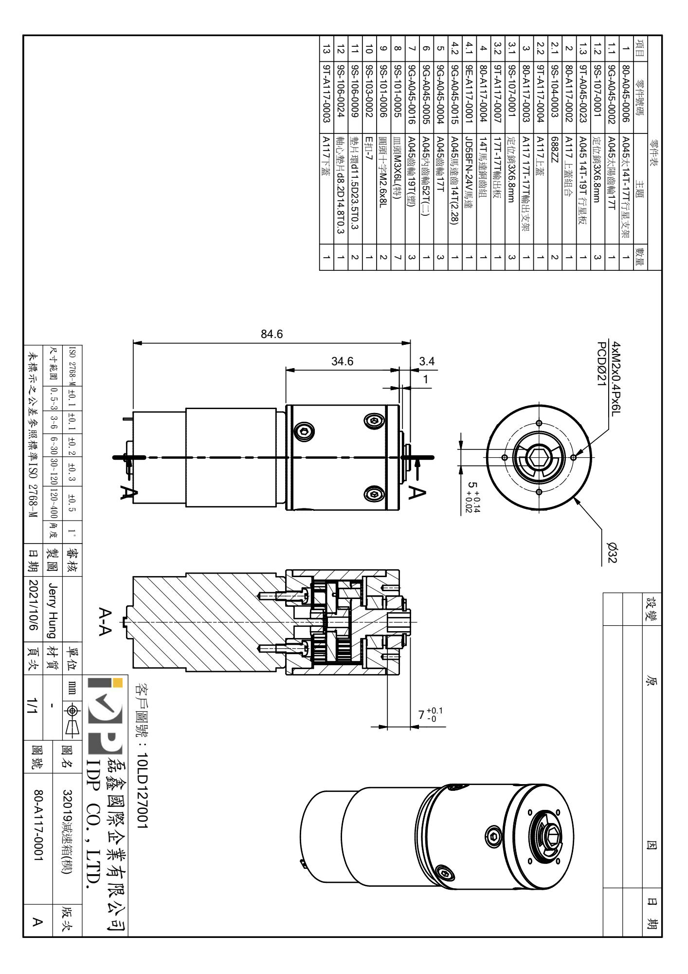 IDP - A117 - 32019減速箱(模) - 量產圖面