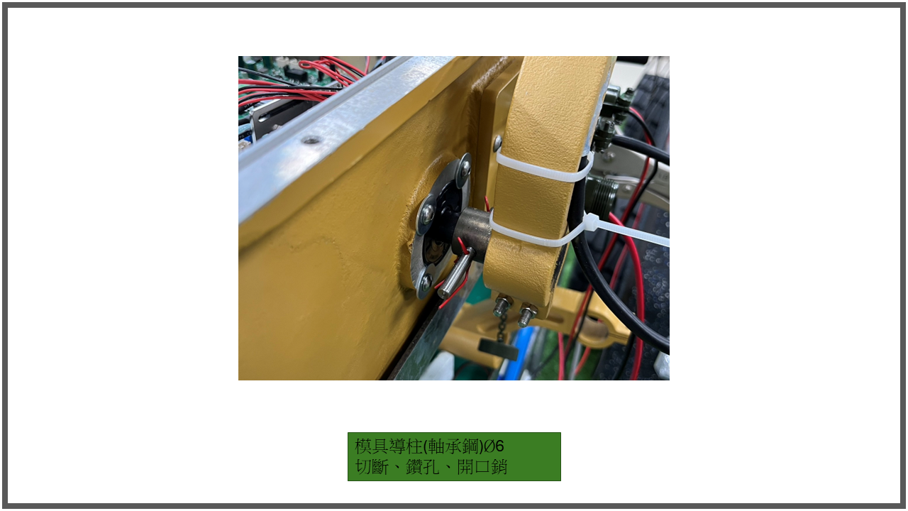 - 模具導柱Ø6mm切斷,長度45mm,鑽孔2洞用開口銷固定
