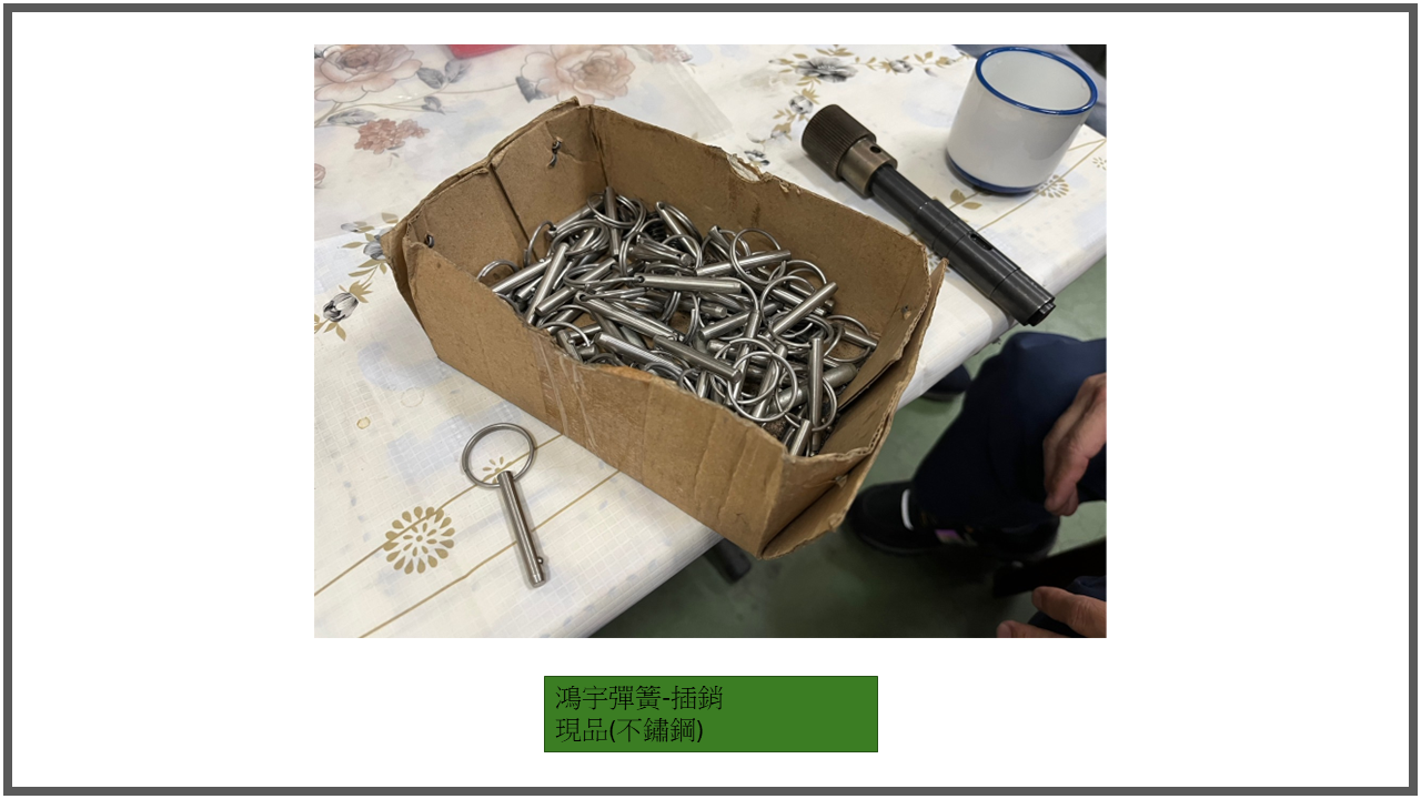 - 鴻宇彈簧,插銷有現品(不鏽鋼),估插銷(彈簧鋼)300pcs@60元/支,工時1~2月
