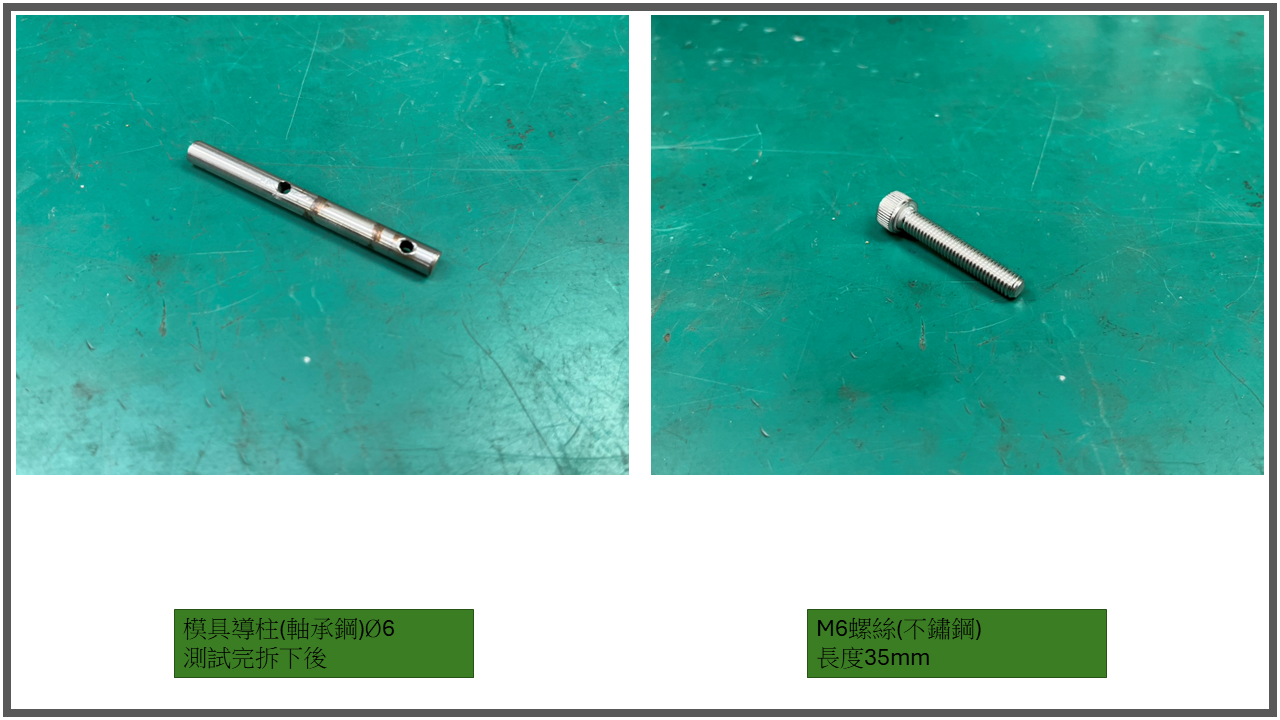 - 導柱(軸承鋼)測試-6小時1800次,總測試共5400次