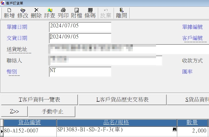 客戶下訂單2000Pcs