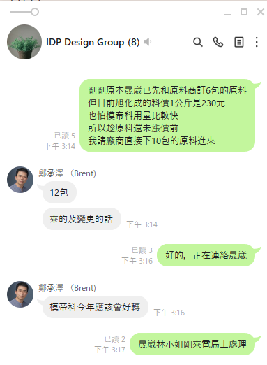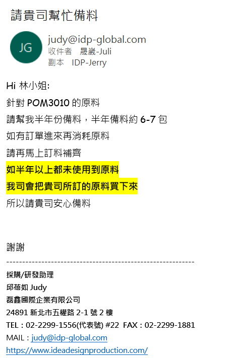 2. 模帝科希望半年備10包原料,所以請廠商直接備料12包