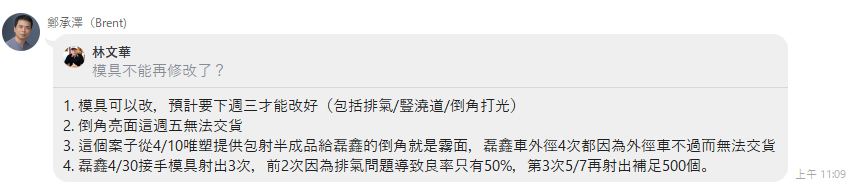 客供料三種試樣,結果外徑尺寸過小與外觀未達標準