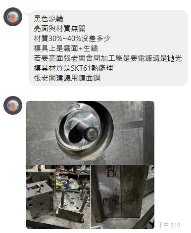 黑色滾輪產品說明:黑色滾輪為客供料,經客戶說明該產品是出貨給日本應用於紡織機上,表面外徑會與紡紗線接觸會影響走功能至關重要,所以重新定義檢驗標準"表面粗糙度"即指是會造成表面任何痕跡的標準