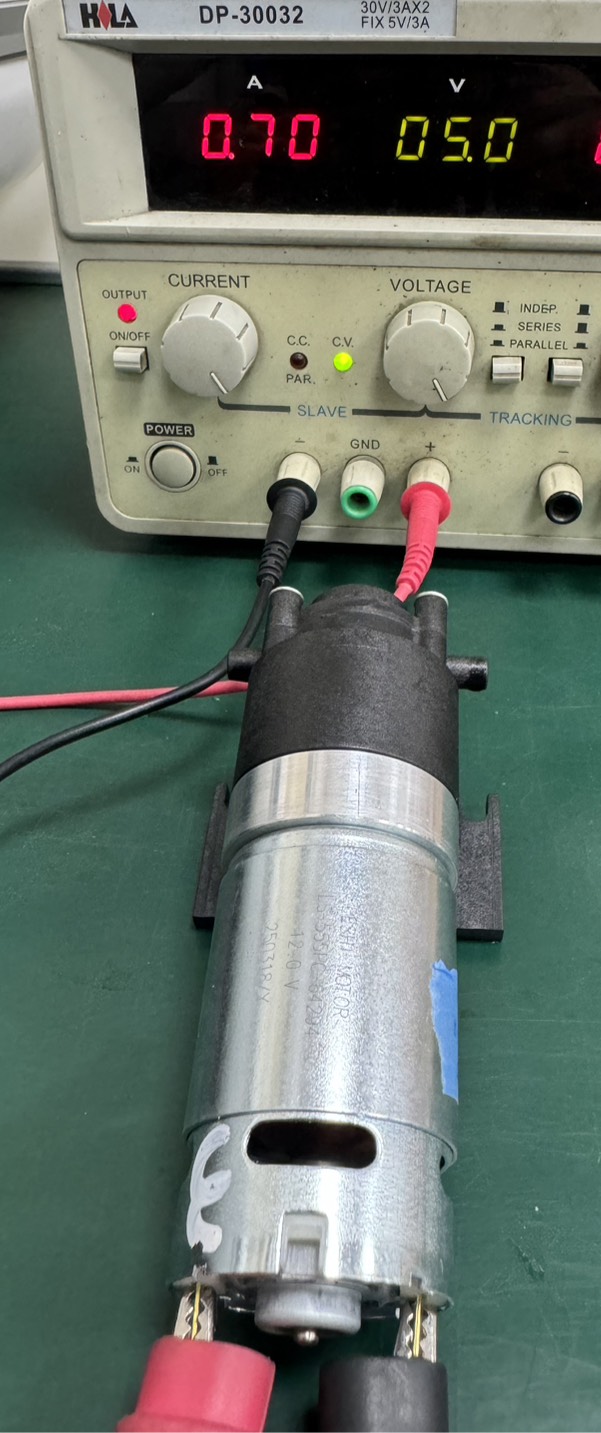 室溫24測試5V 測電流A離30cm測噪音dBA馬達表溫℃減速箱表溫℃管內徑 6 mm測漏
