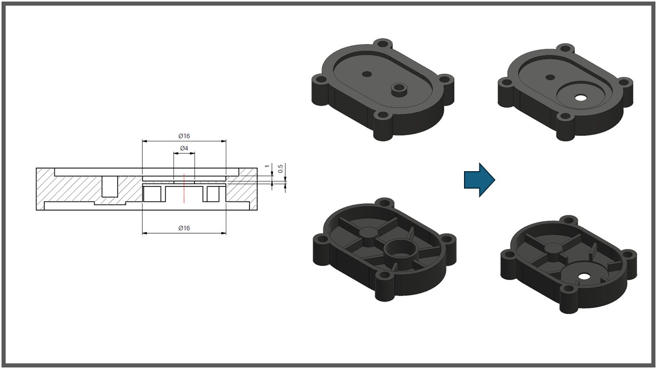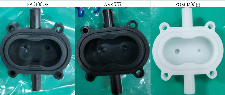 中座+上蓋射出3種材質,PA6+30GF、ABS-757、POM-M90白