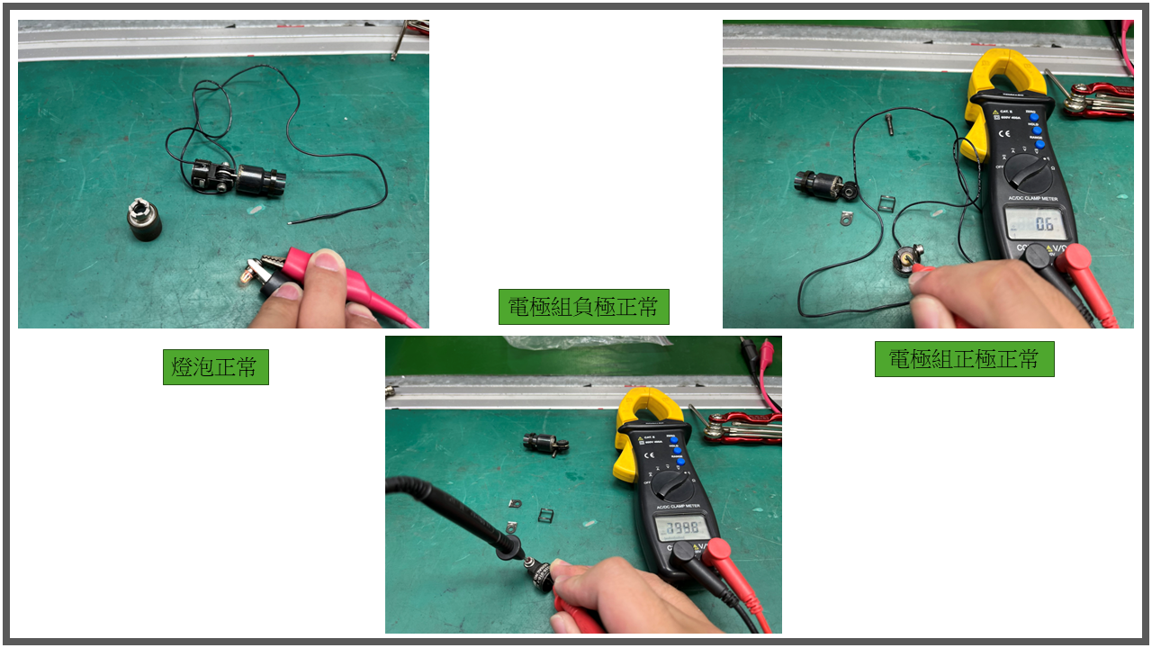 問題判定:主體旋轉座斷裂,負極無法到達燈泡
