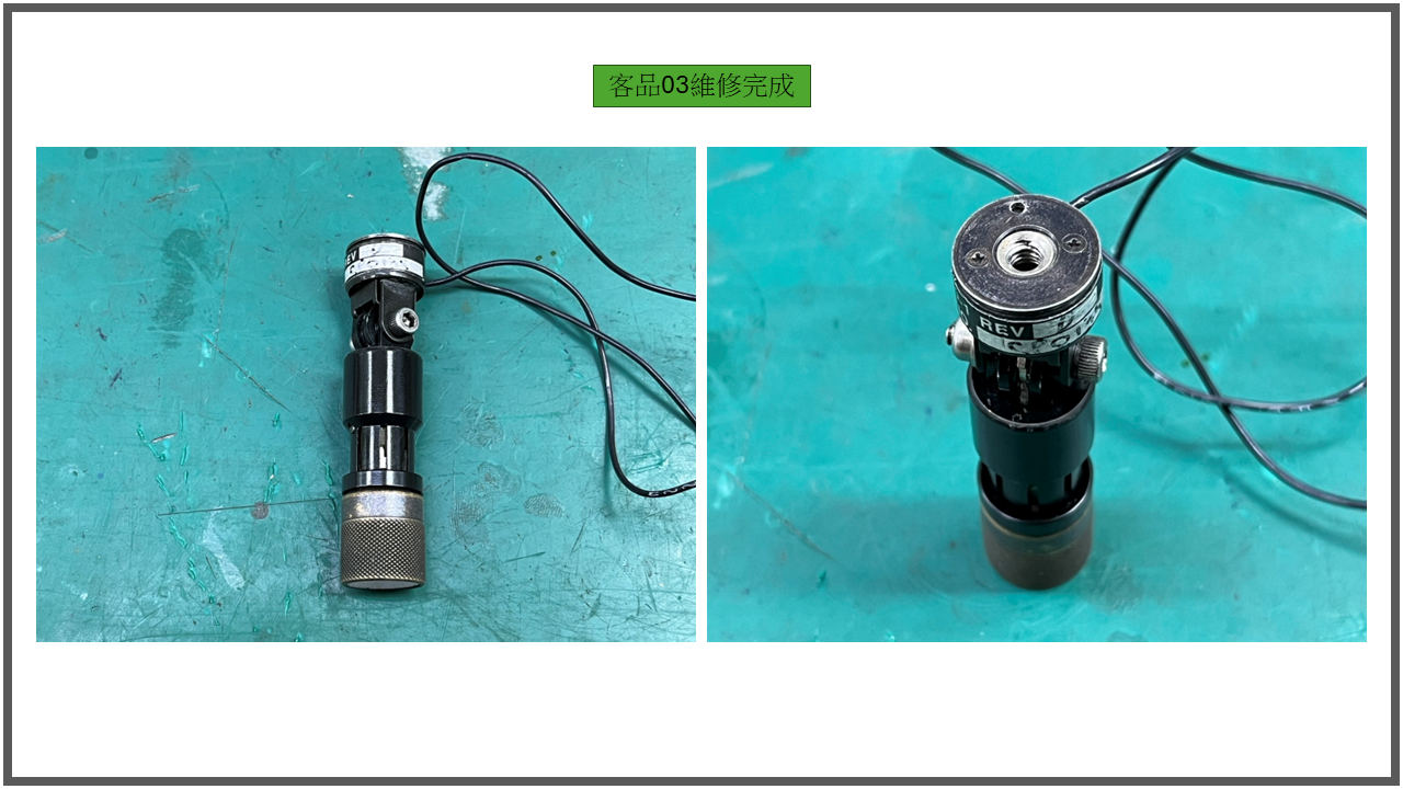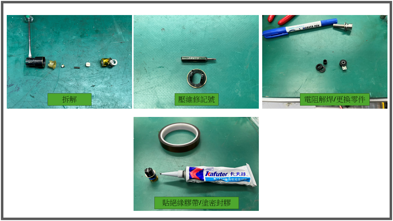 維修所需零件:主體外殼、主體旋轉座(目前無庫存)、電阻(功能無法測到)