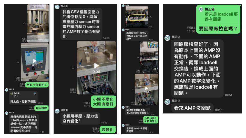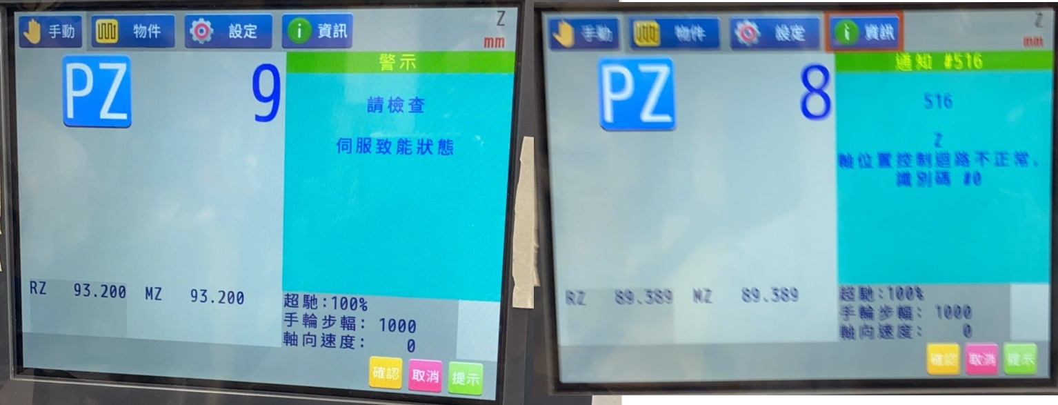 2. 下壓後不會因壓力或位置超過設定值而停止,重開機也無法調位置(一直顯示異常)按掉後又跑出來